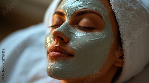Fototapeta premium Relaxing facial treatment at a spa with calming towels surrounding the client