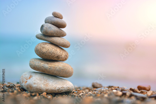 Fototapeta premium Relaxing on the beach, stack of stones.
