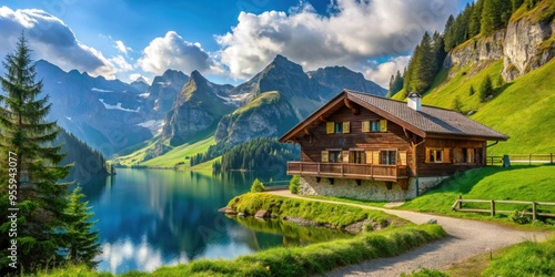 Naklejka premium Relaxing retreat in the serene Swiss Alps , nature, mountains, peaceful,...