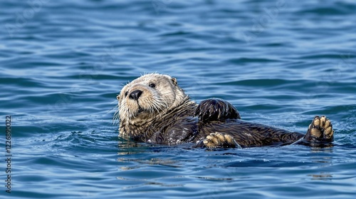 © Sammar, Obraz premium Relaxing Sea Otter Floating on Calm Blue Water