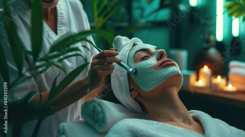 Obraz premium Relaxing Spa Treatment with Facial Mask Application in a Serene and Luxurious Setting