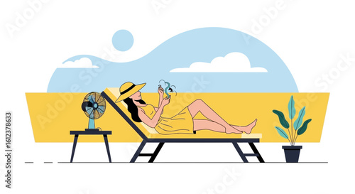 Obraz premium Relaxing Summer Day A Woman Lounging and Using Her Mobile Phone On The Beach