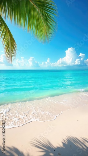 Fototapeta premium Relaxing sunny day at the beach with gentle waves lapping the shore, clear blue sky, and soft sand Perfect summer vacation scene , beautiful, sun