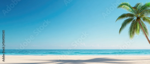 © Mongkol, Fototapeta premium Relaxing tropical beach scene with palm trees clear waters calm environment scenic view nature's beauty