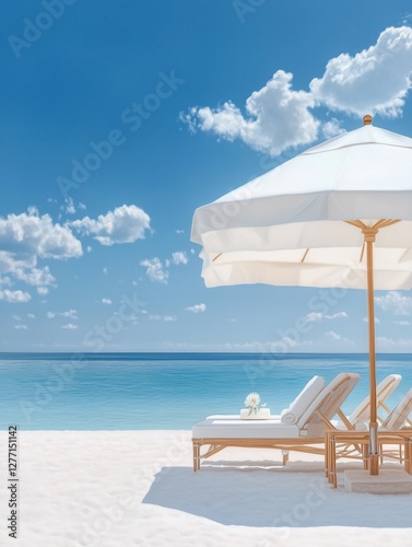 © Vadym, Fototapeta premium Relaxing Under Umbrellas on a Serene Shore