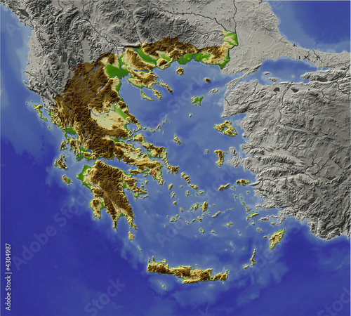 © Arid Ocean, Fototapeta premium Reliefkarte von Griechenland