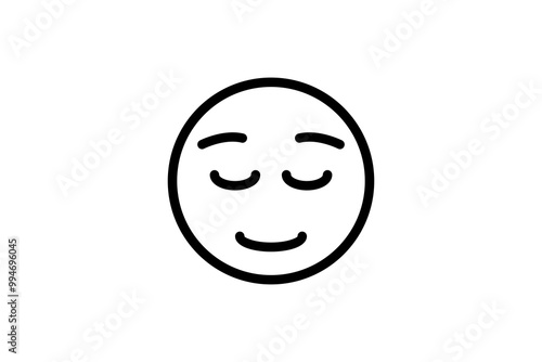 © MUN, Fototapeta premium Relieved face emoji in line art. Emoticon icon vector.
