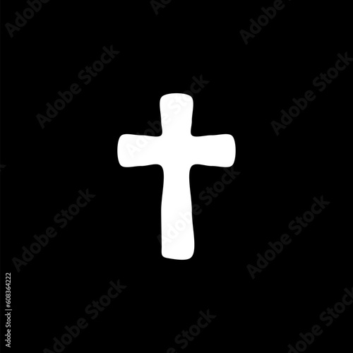 © Jovana, Obraz premium Religion cross hand drawn icon isolated on black background