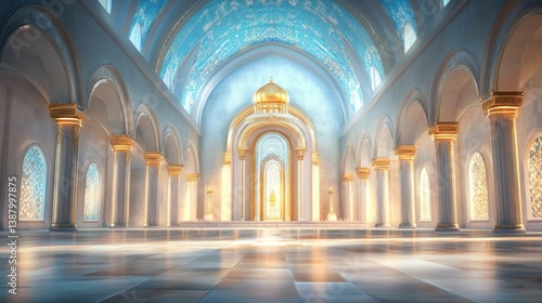 © lublubachka, Fototapeta premium Religious rituals at a synagogue emphasizing prayer, reflection, and the beauty of Jewish traditions within a serene setting