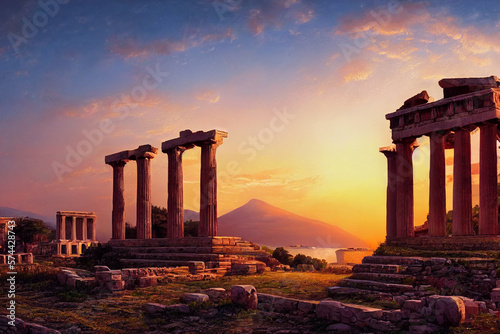 © Marvin, Fototapeta premium remains of an ancient building at sunset, mediterranean climate made with Generative AI