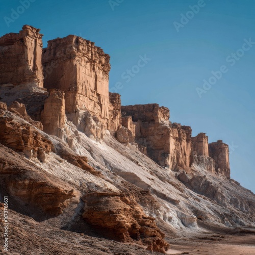 Fototapeta premium Remarkable desert cliffs showcasing natural formations and rugged textures.