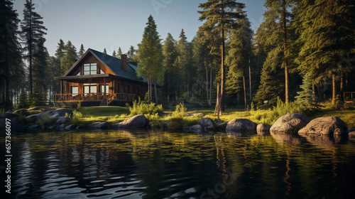 Fototapeta premium Remote Cabin Tranquility. Discover tranquility in this remote cabin