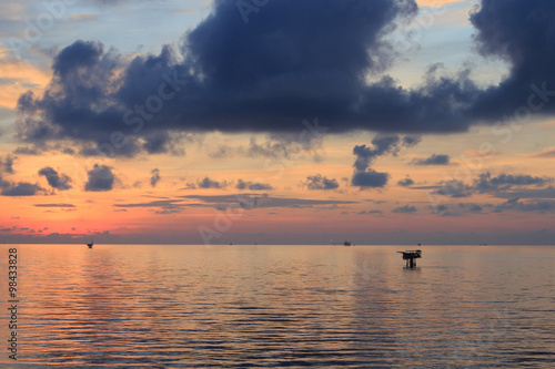 © bomboman, Naklejka premium Remote Offshore Production Platforms in Sunset Time