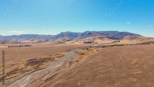 Naklejka premium Remote rural arid desert like valley McKenzies Pass near Dog Kennel corner...