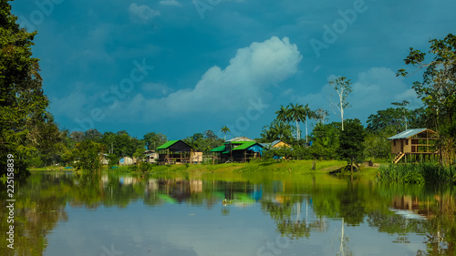 © iris, Obraz premium remote village houses at the amazonas river in peru