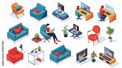 Obraz premium Remote Work Isometric Collection: Work from Anywhere