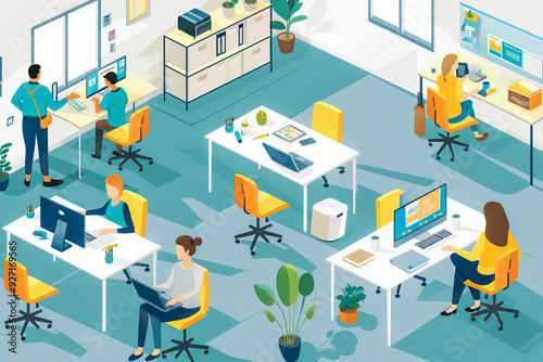 © VisualProduction, Obraz premium Remote workers planning ergonomic office with designer.