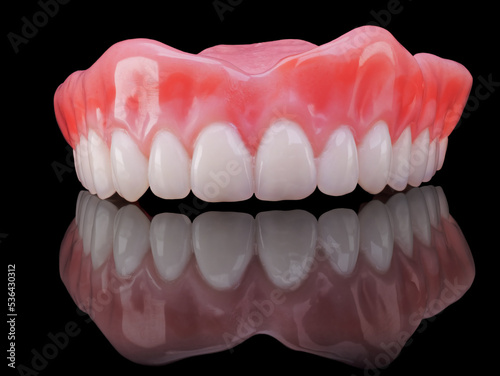 © Porcupine, Obraz premium removable upper denture on black glass background