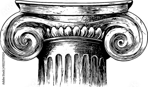© Artem, Fototapeta premium Renaissance stone column decorative engraving vintage sketch hand drawn illustration.