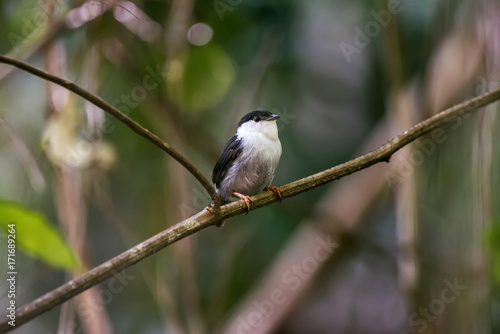 Fototapeta premium Rendeira (Manacus manacus) | White-bearded Manakin photographed in Linhares, Espírito Santo - Southeast of Brazil. Atlantic Forest Biome.