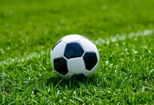 Obraz premium Render a 3D model of a soccer ball on a grass texture with realistic lighting and shadows