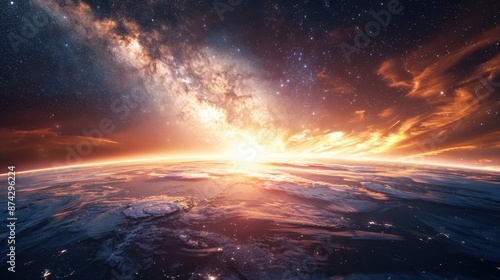 Fototapeta premium Render a stunning view of the Milky Way galaxy from a distant planet.
