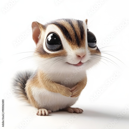 © Mr image, Obraz premium 96. "Render a tiny chipmunk with large, captivating eyes in 3D, isolated on a bright white backdrop.