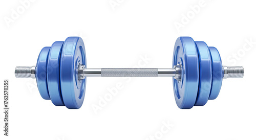 Fototapeta premium Rendered illustration of a metallic barbell with stacked, blue weight plates,...