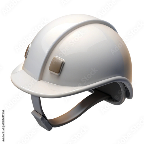 © Global, Fototapeta premium Rendered white construction helmet with strap detail isolated on a black background
