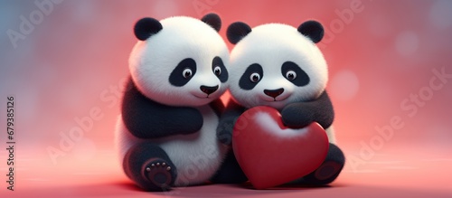 Obraz premium Rendering couple panda animal holdings red heart isolated background