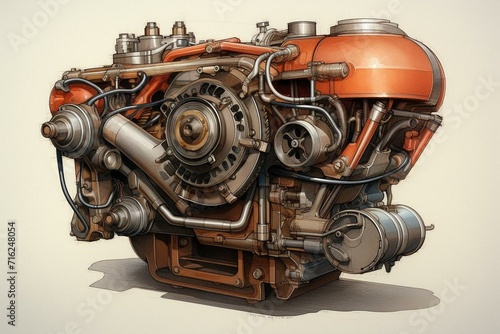 Fototapeta premium Rendering of a marine engine used for boats and ships. Generative AI