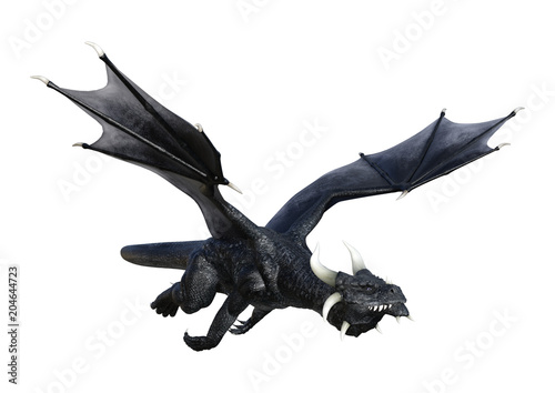 © photosvac, Obraz premium Renderowania 3D Fantasy Black Dragon na białym tle