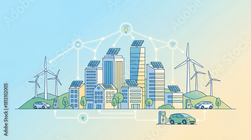 © melhak, Obraz premium Renewable City - Sustainable Tech