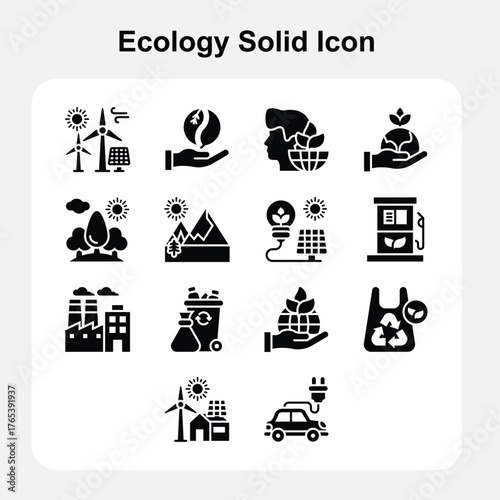 Naklejka premium Renewable Energy and Green Nature Conservation Icons Solid Set 2