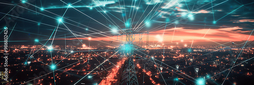 Fototapeta premium Renewable energy infrastructure enhanced AI where artificial intelligence...