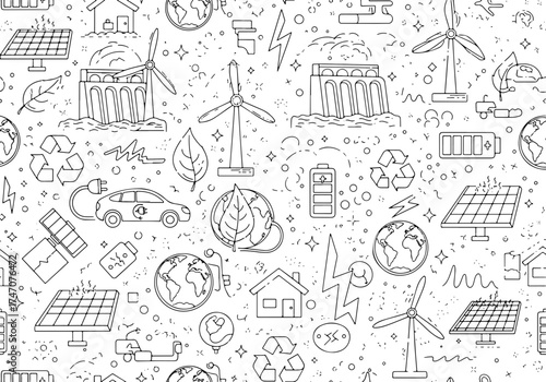 © VectorsId777, Fototapeta premium Renewable Energy Pattern – Random Layout Monoline Style