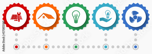© Alex White, Obraz premium Renewable energy service vector icons, power industry flat design web badges collection, business infographic template