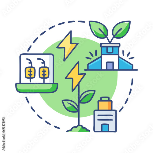 © Zahadur, Fototapeta premium Renewable Energy Sources and Sustainable Technology Powering Green Buildings in an Energy Efficient Way