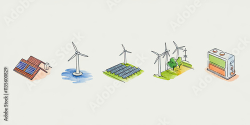 © Ahingska, Obraz premium Renewable Energy Sources Solar Panels Wind Turbines and Power Storage