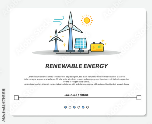Fototapeta premium Renewable Energy Wind Turbine Solar Panel Simple Vector Editable Stroke
