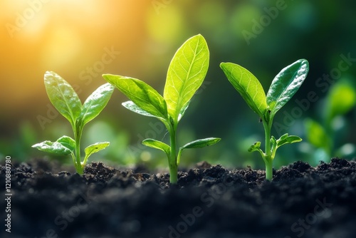 Naklejka premium "Renewal of Life: Close-up of Vibrant Green Sprouts Emerging from the Earth,...