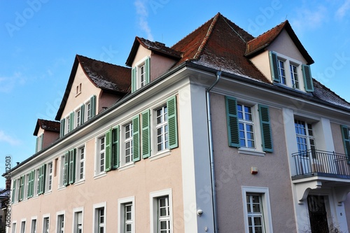 © Hermann, Fototapeta premium Renovated House-Front with Dormer Windows (Gauben) at tiled Roof (Ziegeldach)