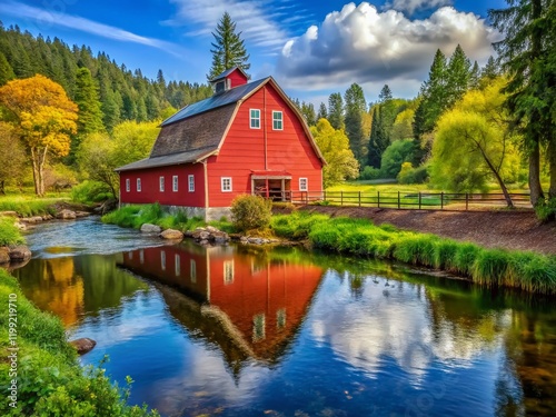 Obraz premium Renovated Red Barn, Tolt River, Carnation WA, Urban Exploration, 2021