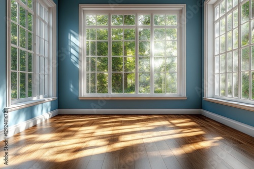 © lucky, Obraz premium Renovation Contrast in Modern Bedroom with White and Blue Walls