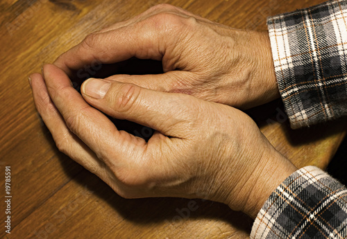 © Starpics, Fototapeta premium Rentner betet am Tisch