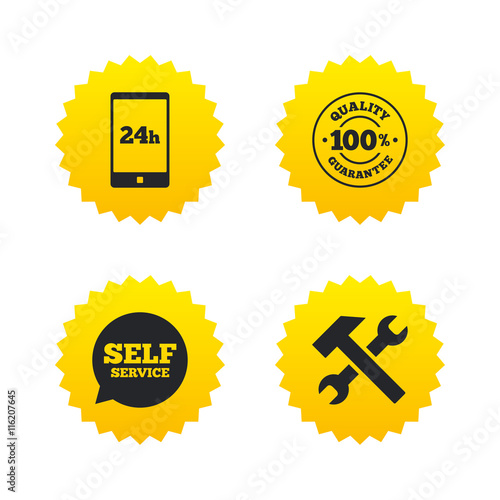 © blankstock, Naklejka premium Repair fix tool icons. Customer service signs.