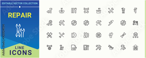 Naklejka premium Repair icon set. Wrench icon collection. Spanner modern vector ui icons. Outline icons in linear style. Vector artwork and illustration.