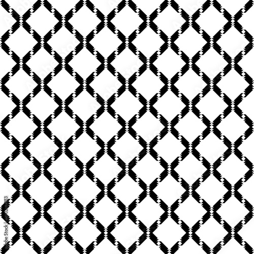 Naklejka premium Repeated black diagonal lines on white background. Grid wallpaper. Seamless surface pattern design with stripes ornament. Grill motif. Digital paper for textile print, web designing, page fills.