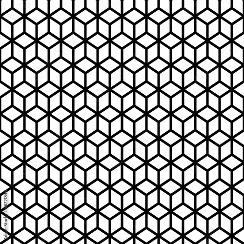 © funkyplayer, Fototapeta premium Repeated white cubes with black edges background. Geometric shapes wallpaper. Seamless surface pattern design with polygons. Cubic motif. Digital paper with dices for web designing, textile print.