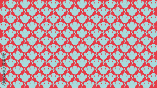Obraz premium Repeating Blue Floral Pattern on Red Background vector illustration
